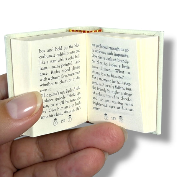 This enchanting miniature book brings classic Christmas magic to life in an impossibly tiny package! Measuring just ~38x53 mm, The Miniature Book of Classic Christmas Stories features timeless tales including O. Henry's "The Gift of the Magi," Mark Twain's "Letter from Santa Claus," and a festive Sherlock Holmes adventure. Perfectly bound in elegant Cabra with a matching slipcase, it's ideal for dollhouse collectors, miniature enthusiasts, holiday decor, or as a unique stocking stuffer / secret Santa gift for book lovers. A true tiny treasure from 2019 - limited and charming!