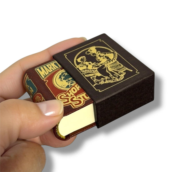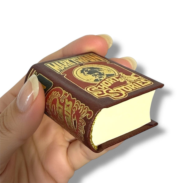 Gorgeous miniature edition of Mark Twain's most beloved short stories, published by Miniaturbuchverlag Leipzig. This tiny English-language hardcover (approx. 38 × 53 mm / 1.5 × 2.1 inches) features 512 pages of readable text, including classics like "The Celebrated Jumping Frog of Calaveras County" and other witty, satirical tales. Beautifully bound with embossed leather-style cover and protected in a matching illustrated slipcase. Perfect for collectors of miniature books, Mark Twain enthusiasts, dollhouse libraries, or unique literary gifts. A true gem of micro-publishing!