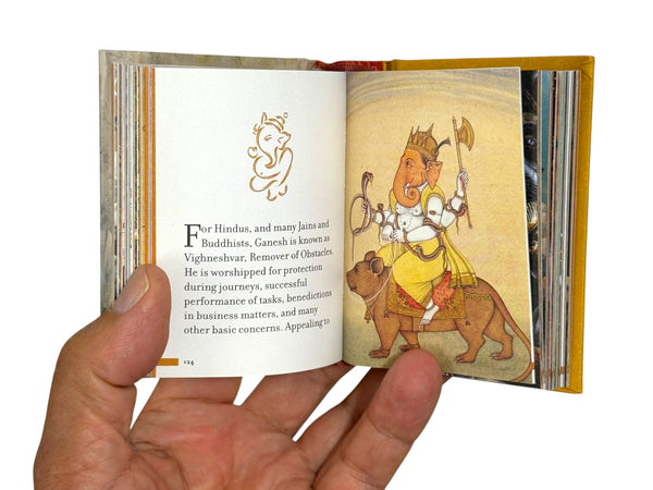Son of the Hindu deities Shiva and Parvati, Ganesh is the elephant-headed deity known most often as a remover (and sometimes creator) of obstacles. Worshipped in Hindi faith at the outset of new meetings and ventures, Ganesh is seen as a figure of prosperity and protection. This publication in the mini book scale collects traditionally styled Indian artwork by Indra Sharma and others, and a selection of writings on the history and philosophy of this deity to inspire thoughts and worship for followers of the deity, and fascinating insights for anyone interested in world religions in general.