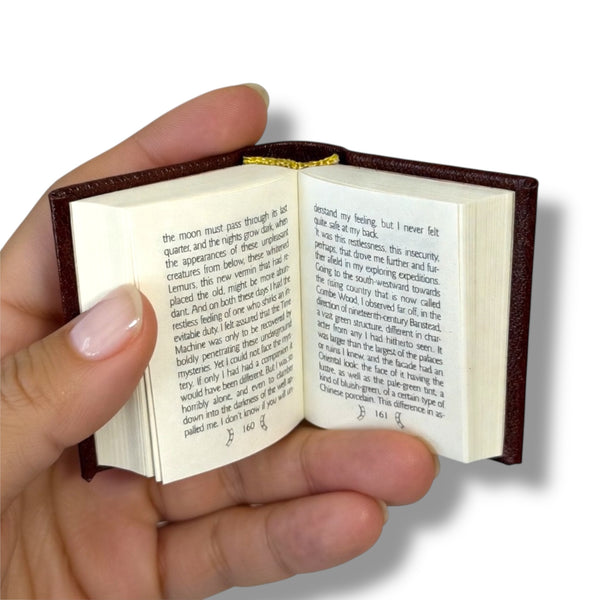 Discover this enchanting miniature edition of H.G. Wells' timeless sci-fi masterpiece, The Time Machine. Perfectly bound in genuine leather with 288 tiny pages (38x53 mm), it arrives in a protective slipcase. A must-have collectible for book lovers, science fiction fans, dollhouse enthusiasts, or as a unique literary gift!