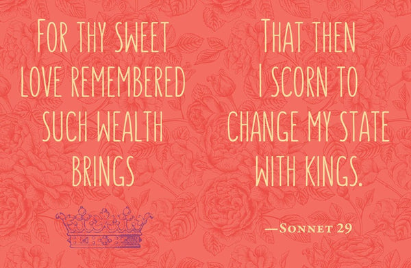 From his plays—“Love looks not with the eyes, but with the mind, and therefore is winged Cupid painted blind” (Helena, A Midsummer Night’s Dream)—to his sonnets—“Shall I compare thee to a summer's day? Thou art more lovely and more temperate” (Sonnet 18)—Shakespeare is recognized as one of the greatest love poets in English history. Even today, his words adorn cards, posters, and other gifts for special occasions.