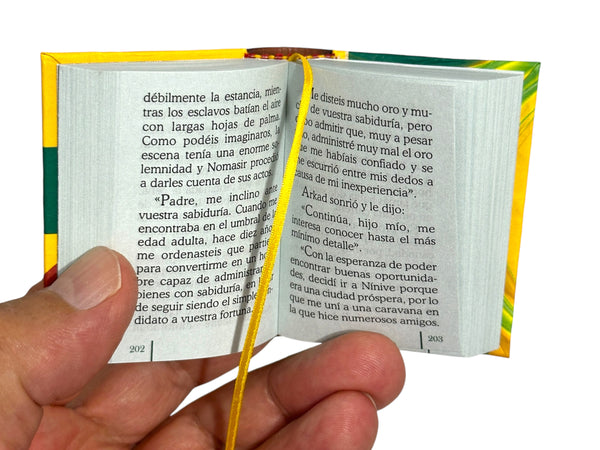 This is a mini (2.65" x 2.0") version, written in Spanish, and easy to read. It is a great addition to any collection of small and miniature books.