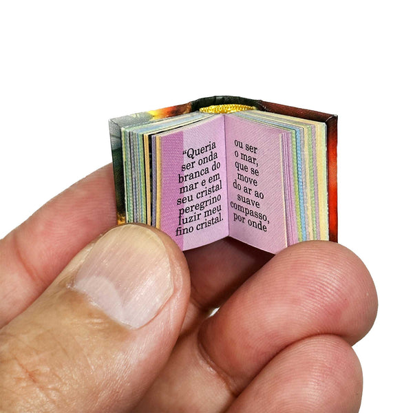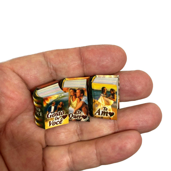 This is a set of 3 micro books in Portuguese (23mm x 18mm), and easy to read. A great addition to any collection of small and miniature books.
